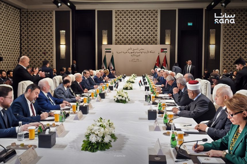 استقبل رئيس الجمهورية العربية السورية السيد أحمد الشرع ووزير الخارجية السيد أسعد الشيباني وفداً من جمهورية ألمانيا الاتحادية على رأسه وزيرة الخارجية السيدة أنالينا بيربوك ونائب رئيس البرلمان الأوروبي السيد آرمين لاشيت في قصر الشعب بدمشق.
