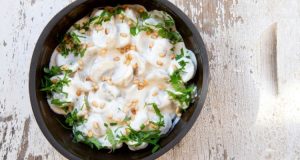 - أخرجي صينية الكنافة من الفرن، ثم اقلبيها في صينية أخرى حتى تصبح الجبنة من الأسفل والكنافة من الأعلى.