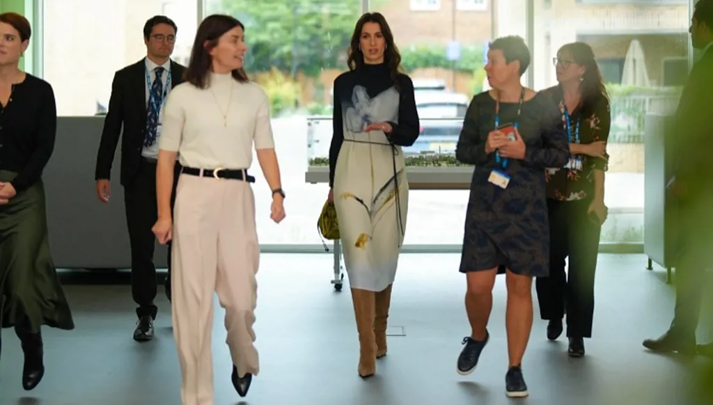 الأميرة رجوة الحسين تخطف الأنظار في لندن بإطلالة ملكية خلال زيارة إنسانية