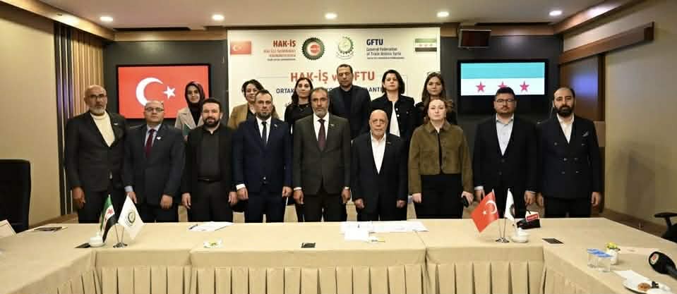 عقد رئيس الاتحاد العام لنقابات العمال في سوريا فواز الأحمد، اجتماعاً مشتركاً في العاصمة التركية أنقرة مع رئيس اتحاد نقابات عمال تركيا (حقيش) جمحمود ...