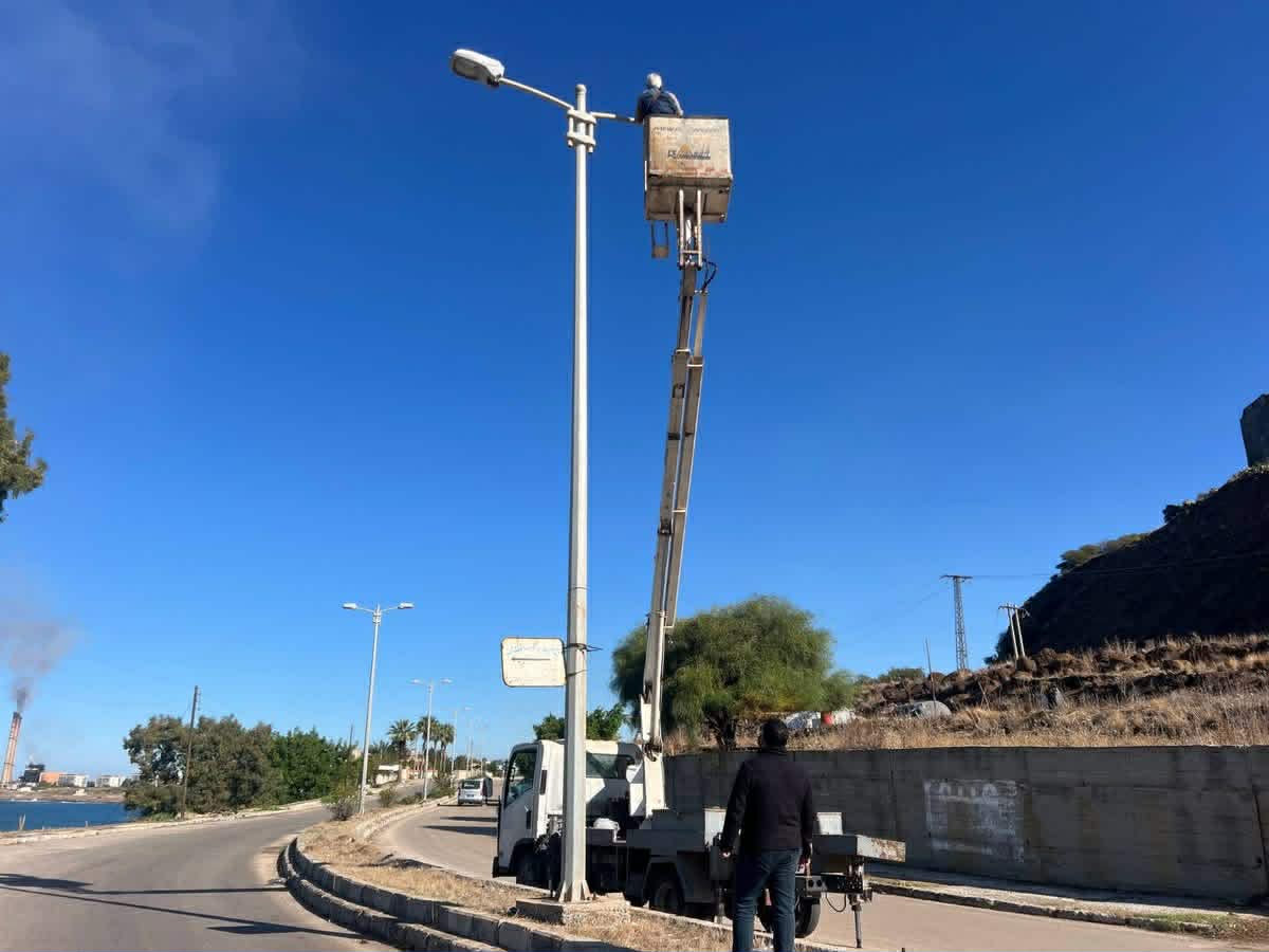صيانة وتأهيل الإنارة العامة في مداخل ومخارج مدينة بانياس