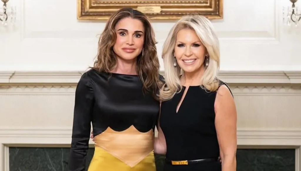 تألّقت ديان كروغر بالأبيض العاجي من مجموعة الألبسة الجاهزة لخريف وشتاء 2025 من “ألبرتا فيريتي” (Alberta Ferretti). حيث ارتدت سروالاً من الموسلين بقصّة واسعة الساقين بتفصيل الثنيات الصغيرة مع “توب” طويلة وواسعة تميّزت بياقة عالية، وكُمّين طويلين واسعين، وطبقات من الكشاكش. كذلك، حملت حقيبة “كلاتش” ذهبيّة.