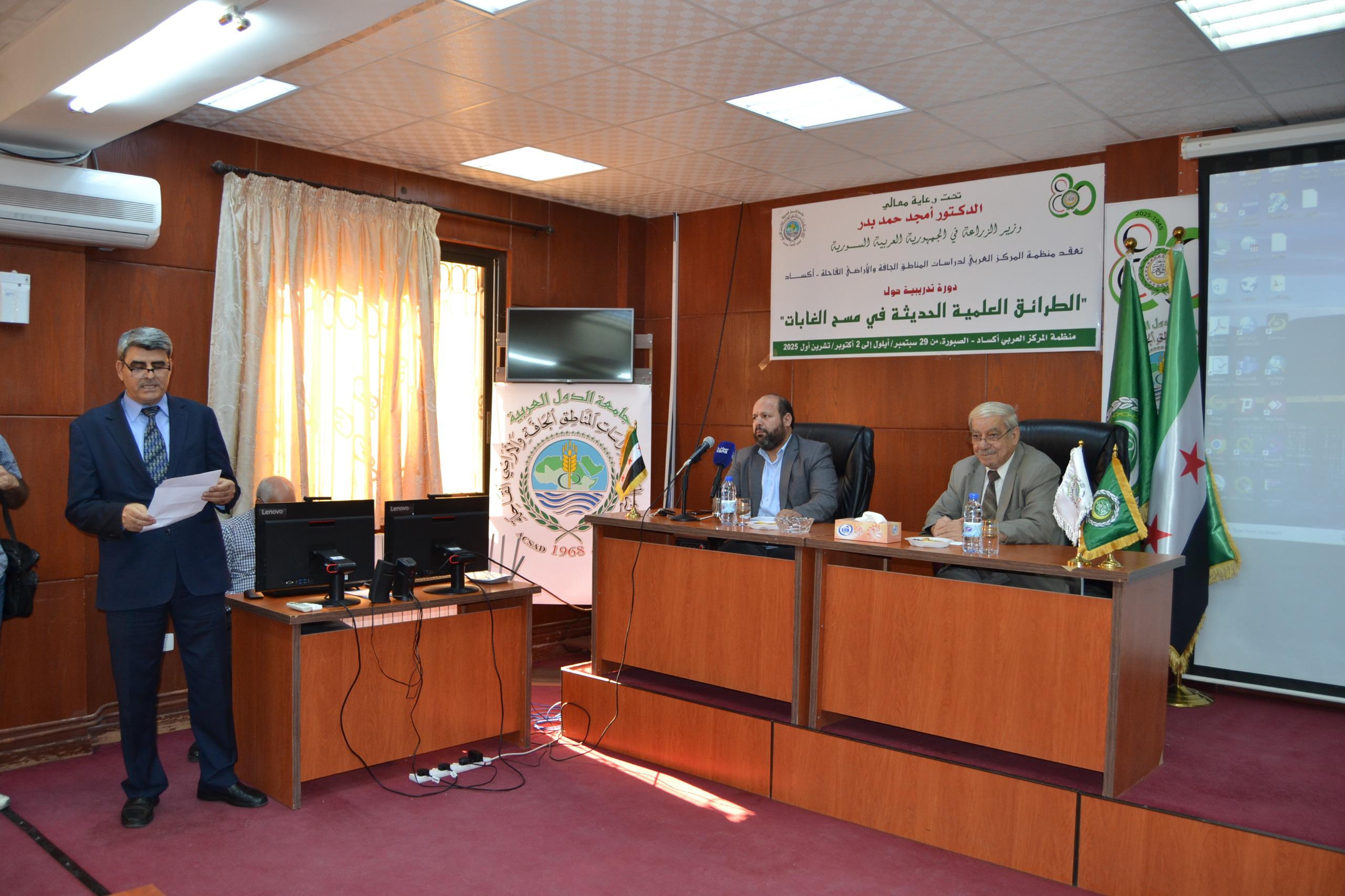 تحت رعاية معالي الدكتور أمجد بدر، وزير الزراعة في الجمهورية العربية السورية، افتتحت منظمة المركز العربي لدراسات المناطق الجافة والأراضي القاحلة “أكساد” دورة تدريبية متخصصة حول “الطرائق الحديثة في مسح الغابات”، وحضر بالنيابة عن معالي وزير الزراعة الدكتور ايهم عبد القادر معاون وزير الزراعة، الاثنين 29 سبتمبر 2025 في مقر المنظمة بدمشق وذلك في إطار التزام أكساد بدعم الزراعة في الوطن العربي، وأدواتها العلمية والفنية لإدارة مواردها الطبيعية بشكل مستدام، وتعزيز الأمن البيئي والغذائي.