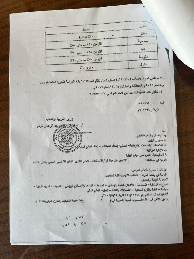 وقبل النشر ابلغنا عدد من أولياء الطلاب انهم تقدموا بشكاوى إضافية للمحافظة والتفتيش في كل من اللاذقيه وطرطوس (رقم الشكوى في فرع الرقابة والتفتيش بطرطوس 710 تاريخ 28-9-2025 ورقم الشكوى في فرع تفتيش اللاذقية1889 تاريخ29-9-2026)وراجعوا الثانوية ومع ذلك لم تتم معالجة شكواهم وارفقوا لنا مجدداً الوثائق التالية: