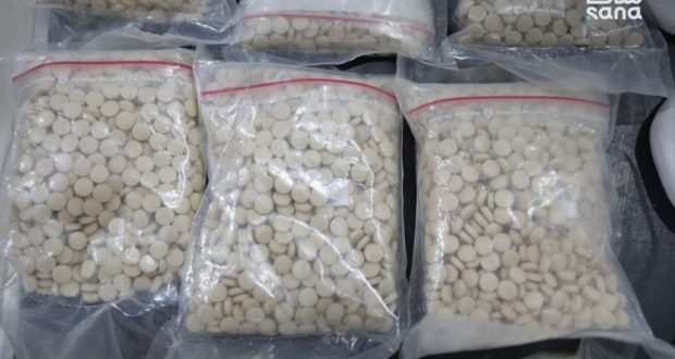 وذكرت وزارة الداخلية في قناتها على تلغرام أنه خلال العملية ضُبط بحوزة الموقوف 46 كفّاً من مادة الحشيش المخدر بوزنٍ إجمالي بلغ 19.14 كغ، بالإضافة إلى 11 ألف حبة كبتاغون مخدرة.