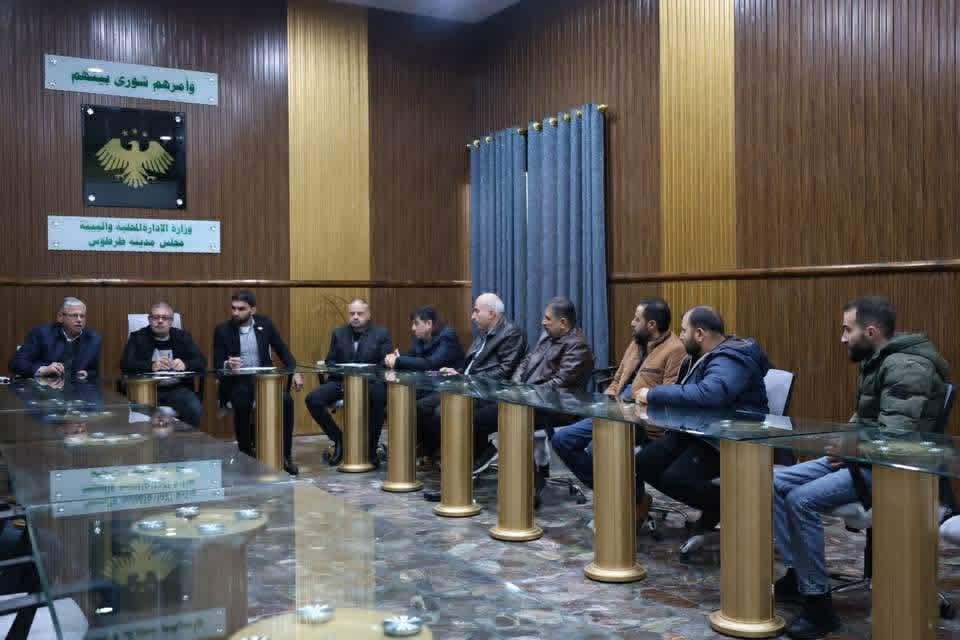 الاجتماع ترأسه المهندس شادي حليمة رئيس مجلس المدينة وحضره رئيس غرفة تجارة وصناعة طرطوس المهندس يوسف محمد شعار ونائبه الثاني المهندس أكثم يوسف وعضو مكتب الغرفة موفق جركس وعدد من اصحاب معارض السيارات وجرى خلاله مناقشة واقع إشغالات معارض السيارات على الأرصفة والشوارع وانعكاساتها السلبية على راحة المواطنين وحركتهم وعلى السلامة المرورية