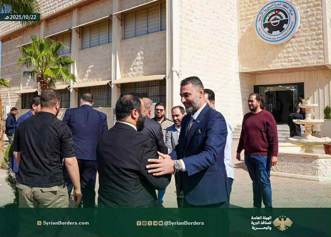 وذكرت الهيئة على صفحتها الرسمية ان الزيارة شملت معبر نصيب الحدودي، حيث اطّلع الوفد على آخر التحديثات الفنية والتنظيمية التي يشهدها المعبر، وعلى الجهود المبذولة لتسهيل حركة العبور للمسافرين والشاحنات، بما ينعكس إيجاباً على انسيابية التبادل التجاري وحركة الترانزيت بين سوريا والأردن.