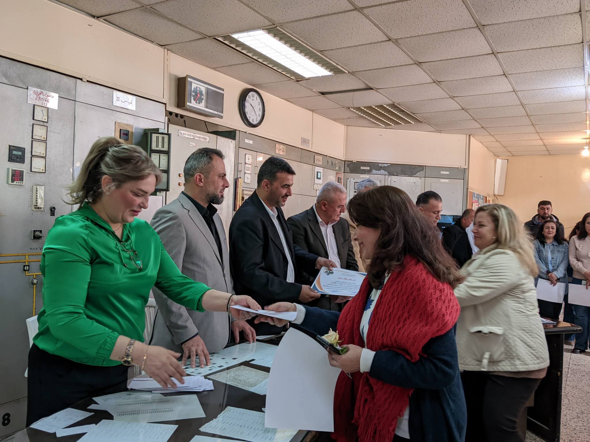 وفي إطار دعم ثقافة التميز وتحفيز الكوادر العمالية، كرم اتحاد عمال طرطوس، بحضور رئيسه أحمد نديم صهيوني ومدير وحدة العمليات التشغيلية في المنطقة الساحلية سامر عبد القادر، نخبة من العمال المتميزين، تقديراً لجهودهم الاستثنائية وأدائهم المهني في مختلف مواقع العمل، ولا سيما دورهم في الحفاظ على المنشآت وبالأخص في الأيام الأولى للتحرير.