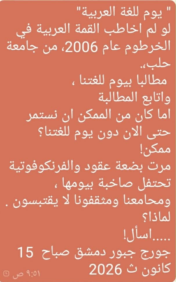 ولدت في 15 اذار 2006 ،بمناسبة قمة الخرطوم ،فكرة ” يوم اللغة العربية”.
