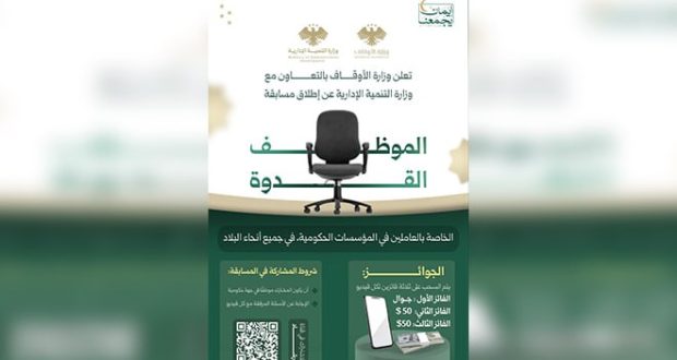 أطلقت وزارة الأوقاف، بالتعاون مع وزارة التنمية الإدارية، مسابقة “الموظف القدوة” الخاصة بالعاملين في المؤسسات الحكومية، وذلك عبر منصتها الرقمية “إرشاد”، بهدف تحفيز الكفاءات، وتعزيز ثقافة التميز الوظيفي في القطاع العام.