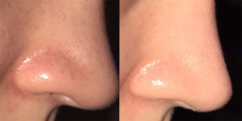 يوضع الخليط على الأنف لمدة 15 دقيقة، ويدلك بحركات دائرية ثم يغسل بالماء الفاتر.