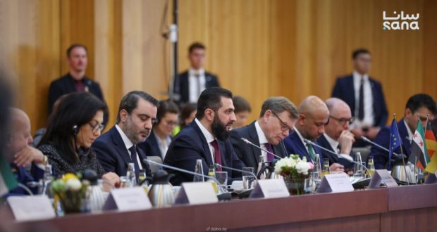وأكد الرئيس الشرع أن ألمانيا تعد من الدول الصناعية المتقدمة، وتشكل ثالث أكبر اقتصاد في العالم، وتمتلك تقنيات متطورة في مجالات الزراعة والاتصالات والذكاء الاصطناعي والإنتاج، ما يجعل التعاون معها فرصة مهمة لدعم مسار التنمية في سوريا.