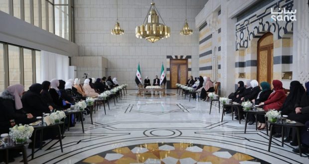 الرئيس الشرع وعقيلته لطيفة الدروبي يلتقيان سيدات سوريات في قصر الشعب بمناسبة عيدَي الفطر والأم