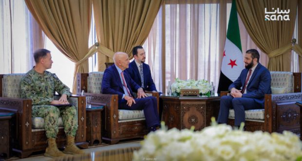 الرئيسية » الأخبار المحلية » الرئيس الشرع يبحث مع باراك سبل تعزيز الأمن والاستقرار