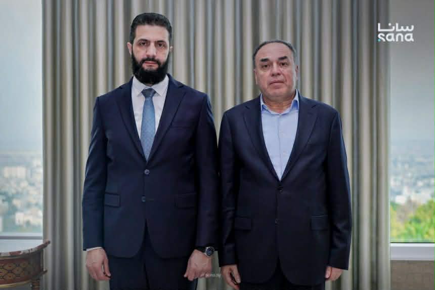استقبل الرئيس أحمد الشرع مظلوم عبدي وإلهام أحمد بحضور وزير الخارجية والمغتربين أسعد حسن الشيباني والمبعوث الرئاسي لتنفيذ اتفاق الـ 29 من كانون الثاني مع قسد العميد زياد العايش لبحث استكمال عملية الدمج في مؤسسات الدولة.