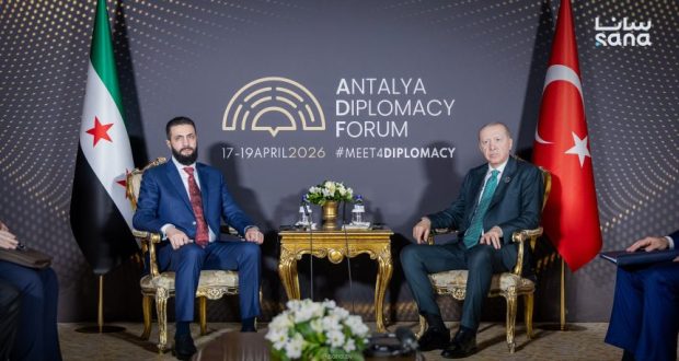 ويشارك الرئيس الشرع في منتدى أنطاليا الدبلوماسي بدورته الخامسة التي انطلقت فعالياته اليوم، وأجرى على هامش أعمال المنتدى عدداً من اللقاءات مع الرؤساء والوزراء المشاركين.