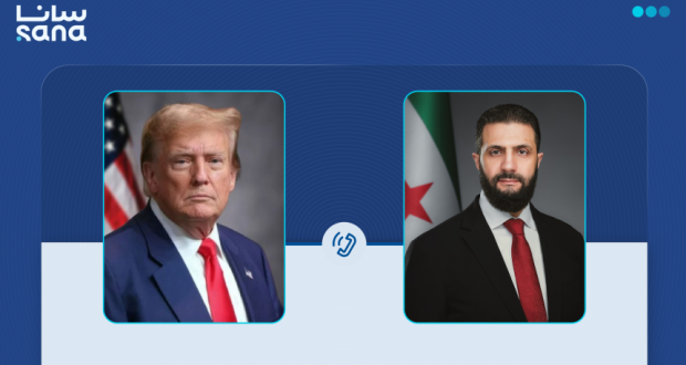 أجرى الرئيس أحمد الشرع، اليوم، اتصالاً هاتفياً مع رئيس الولايات المتحدة الأمريكية دونالد ترامب.