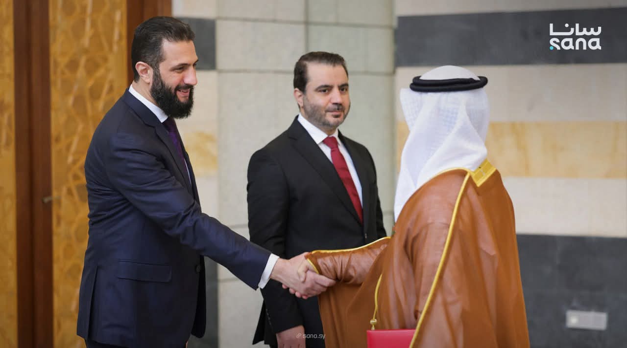 وتقبل أوراق اعتماد السفير خليفة عبد الله آل محمود، سفير دولة قطر لدى الجمهورية العربية السورية، وجرى ذلك بحضور وزير الخارجية والمغتربين أسعد حسن الشيباني