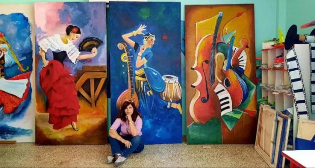 *_شاركت في ملتقيات عدة ، وكلها تركت أثراً جميلاً في نفسي، وأكثرها مشاركتي في سمبوزيوم رسم طبيعة في لبنان؛ لأنه كان في صميم حبي للطبيعة، وبالإضافة إلى لقائي بفنانين من جميع أنحاء العالم، حيث استفدت من تجارب وثقافات الفنانين. في الحقيقة الملتقيات الفنية تزيد الألفة وروح التعاون وتصقل المواهب، كما حصل في مشاركتي أيضاً في ملتقى رسم مع جمعية شموع السلام، ومؤخراً بجدارية “طوفان الأقصى” شارك بها مجموعة من الفنانين بإشراف الفنان محمد ركوعي، وعرضت بعدها في السفارة الفلسطينية. وفي الحديث عن الجداريات، أنجزت العديد منها في المدرسة واستعملت الألوان التي تجذب الأطفال.