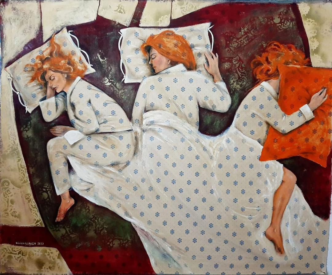 يتجلّى أسلوب فيفيان الصايغ في ريشة ناعمة تمتلك قدرة عالية على تطويع الخط واللون لصالح التعبير النفسي والسرد الإنساني. هذه الريشة لا تبحث عن الصدمة البصرية بقدر ما تبني حالة شعورية تتسلّل بهدوء إلى وعي المتلقي، فتقوده من طبقة إلى أخرى داخل اللوحة. أعمالها ليست مشاهد منفصلة، بل قصص متتابعة وحكايا تعبيرية متنوّعة، تتغيّر أجواؤها من عمل إلى آخر من دون أن تفقد خيطها الإنساني المشترك. في كل لوحة ثمة سرد بصري يُستعاد بطرق مختلفة عبر تكرار الشخصية في أوضاع متباينة، واختلاف الإضاءة والخلفيات، وتحول المشاعر بين السكون والتوتّر.