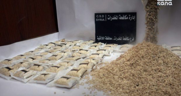 ألقى فرع مكافحة المخدرات في محافظة اللاذقية، بالتعاون مع قيادة الأمن الداخلي، القبض على شخصين اثنين بحوزتهما 150 ألف حبة كبتاغون.