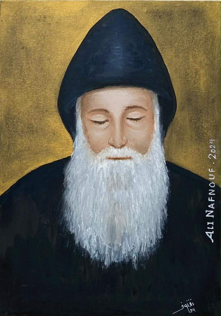 وانا شخصيا اشعر برهبة عميقة وخشوع صادق امام عظمة هذا القديس حتى يكاد الاحساس يتجاوز حدود التأمل الى حالة حضور داخلي كثيف كأنني اقف امام احد اولياء الله الاطهار حيث يتسلل هذا الشعور دون استئذان ويستقر في داخلي بوصفه يقينا لا يحتاج الى برهان وقد يكون لهذا الاحساس تفسير نفسي عميق او جذور وجدانية بعيدة لكنني لا استطيع انكار صدقه ولا تأثيره فيّ اذ اشعر ان كل ما يقال عن شفاعته وحضوره الروحي ليس مجرد روايات متداولة بل تجربة شعورية حية تتجدد في داخلي ومع هذا الانجذاب الروحي وجدت نفسي مدفوعا الى تخليد هذه الحالة عبر الفن فكانت اللوحة بالنسبة لي ليست مجرد عمل تشكيلي بل فعل ايمان وترجمة بصرية للخشوع والمحبة وقد رسمت القديس شربل اكثر من مرة وفي مناسبات مختلفة كأنني اعود في كل مرة لاكتشاف وجه جديد من حضوره وفي اللوحة المرافقة لهذا المقال والتي انجزتها بين عامي 2024 و2025 حاولت ان اقبض على لحظة الصمت النوراني التي اشعر بها تجاهه فجاءت كتعبير صادق عن تجربة شخصية تتجاوز الرسم الى ما يشبه الصلاة الصامتة المرسومة بالالوان