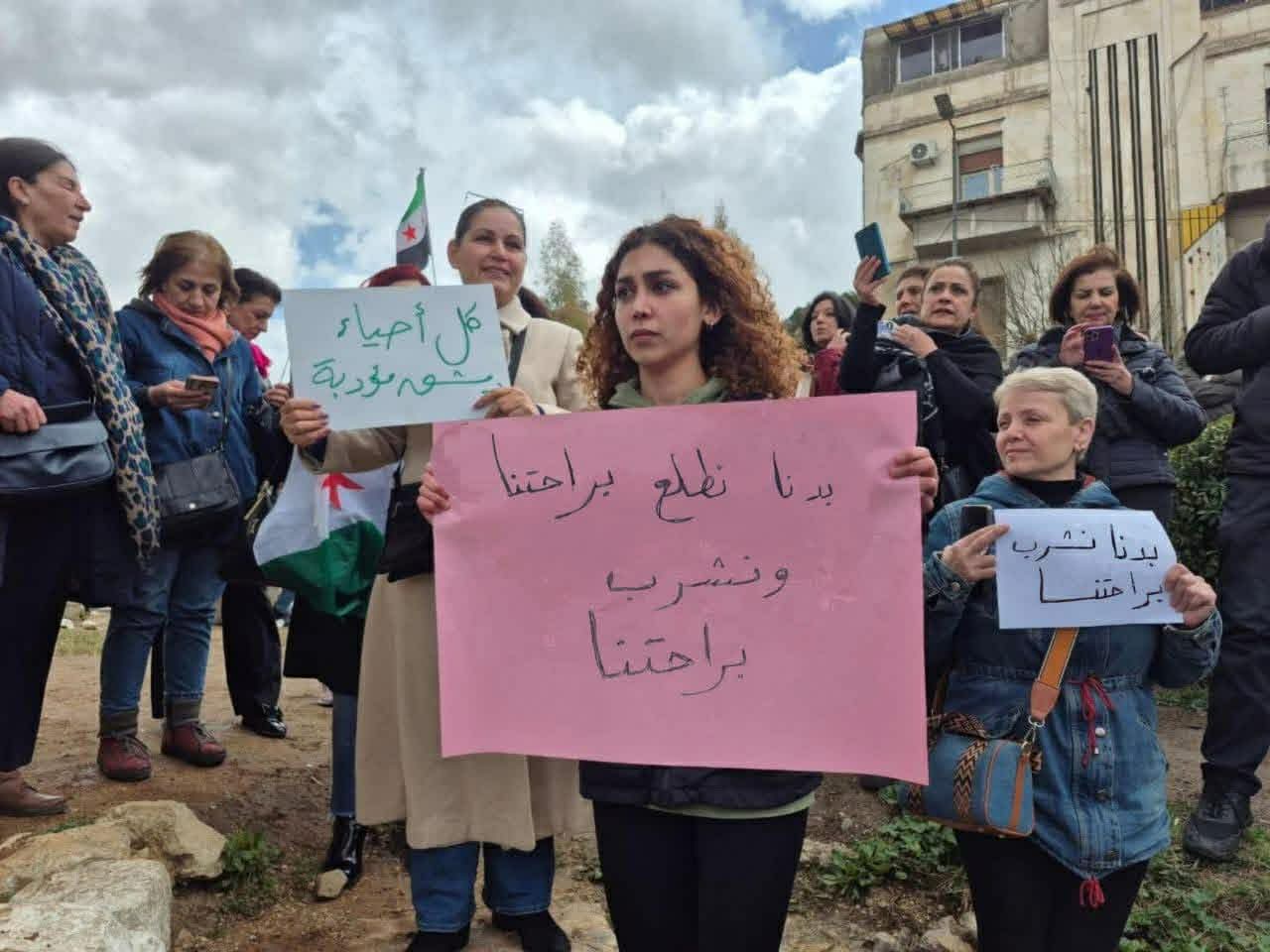 وخلال الوقفة الاحتجاجية السلمية رفع المشاركون شعارات ترفض أي قرارات رأوا أنها تنتقص من حرية السوريين وكرامتهم، مؤكدين في الوقت ذاته رفضهم لمحاولات الفصل المناطقي أو الخطاب التحريضي الذي لا يعبّر عن تاريخ دمشق ولا عن نسيجها الاجتماعي. ومن بين الشعارات التي برزت خلال الاعتصام: “سوريا متنوعة”، في تأكيد واضح على وحدة المجتمع وتعدديته.