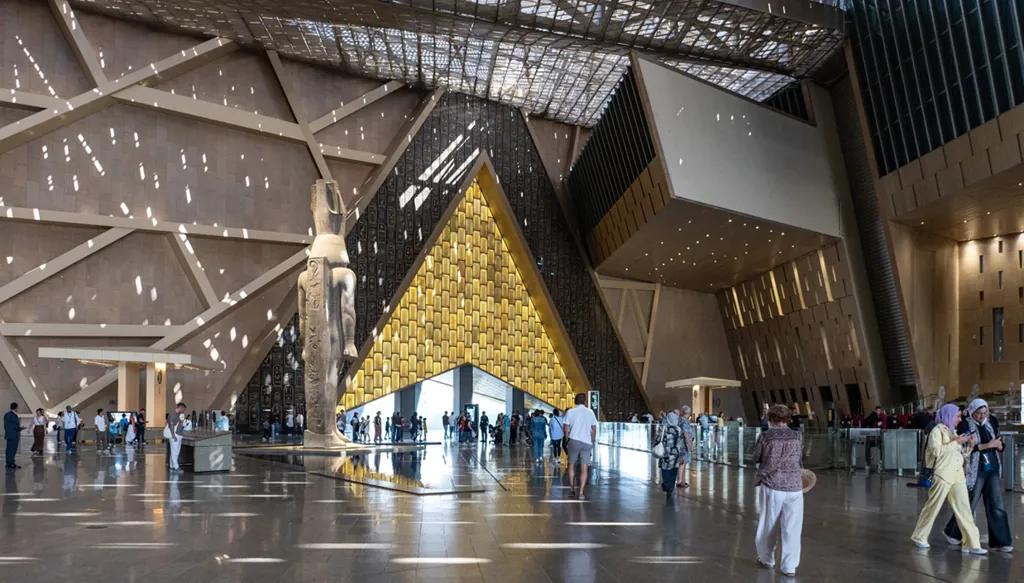 ويضيف شاكر أن من مزايا المتحف أيضاً أنه مقاوم ضد الزلازل، وبه أكبر معمل إقليمي لترميم الآثار وأحدث سبل العرض التكنولوجية والذكاء الاصطناعي والواقع المعزز التفاعلي، ويقع أمام أحد عجائب الدنيا السبع وهو الهرم الأكبر، والتصميم بالكامل على هيئة هرم يستقبل أشعة الشمس، فهو لا يقارن بأي متحف آخر.