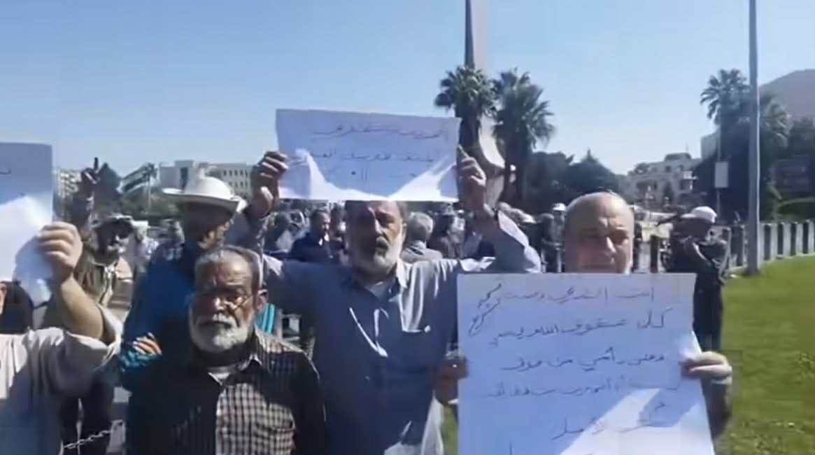 وخلال الاعتصام رفع المشاركون عبارات تطالب بضرورة إعادة حقوق المتقاعدين غير المتورطين بسفك الدم السوري وصرف رواتبهم التي عملوا وافنوا عمرهم حتى استحقوها،