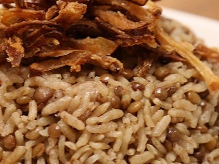 5. اسكبي المجدرة بأطباق التقديم، وزيني بالبصل المقلي.