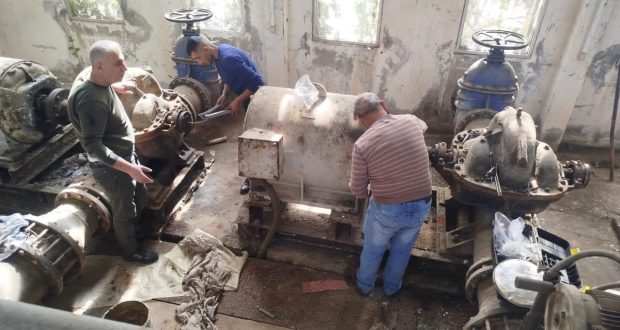 أعادت الورشات الفنية في مديرية الموارد المائية بطرطوس تأهيل محطة ضخ عين الزبدة، وشملت الأعمال صيانة ثلاثة محركات وثلاث مضخات ضمن المحطة، التي تروي 360 هكتاراً من الأراضي الزراعية في سهل عكار ضمن شبكات سد الابرش، باستطاعة 110 كيلو واط لكل محرك و220 لتراً/ثانية لكل مضخة.