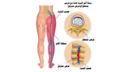 قد تأتى فى صورة أعراض عرق النسا او ألم أسفل الظهر.