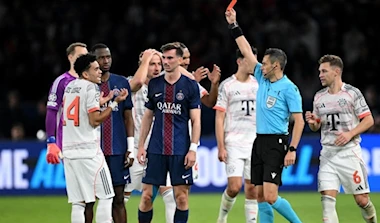 وتأخّر سان جيرمان بهدفَين سجّلهما الكولومبي لويس دياس في الدقيقتَين 4 و32، قبل أن يُطرَد الجناح الدولي إثر تدخّلٍ عنيفٍ من الخلف على الظهير حكيمي (45+7) الذي غادرَ أرضيّة الملعب باكياً بعدما سبقهُ ديمبيليه مصاباً أيضاً (25)، فيما قلّصَ البديل البرتغالي جواو نيفيش النتيجة (74).