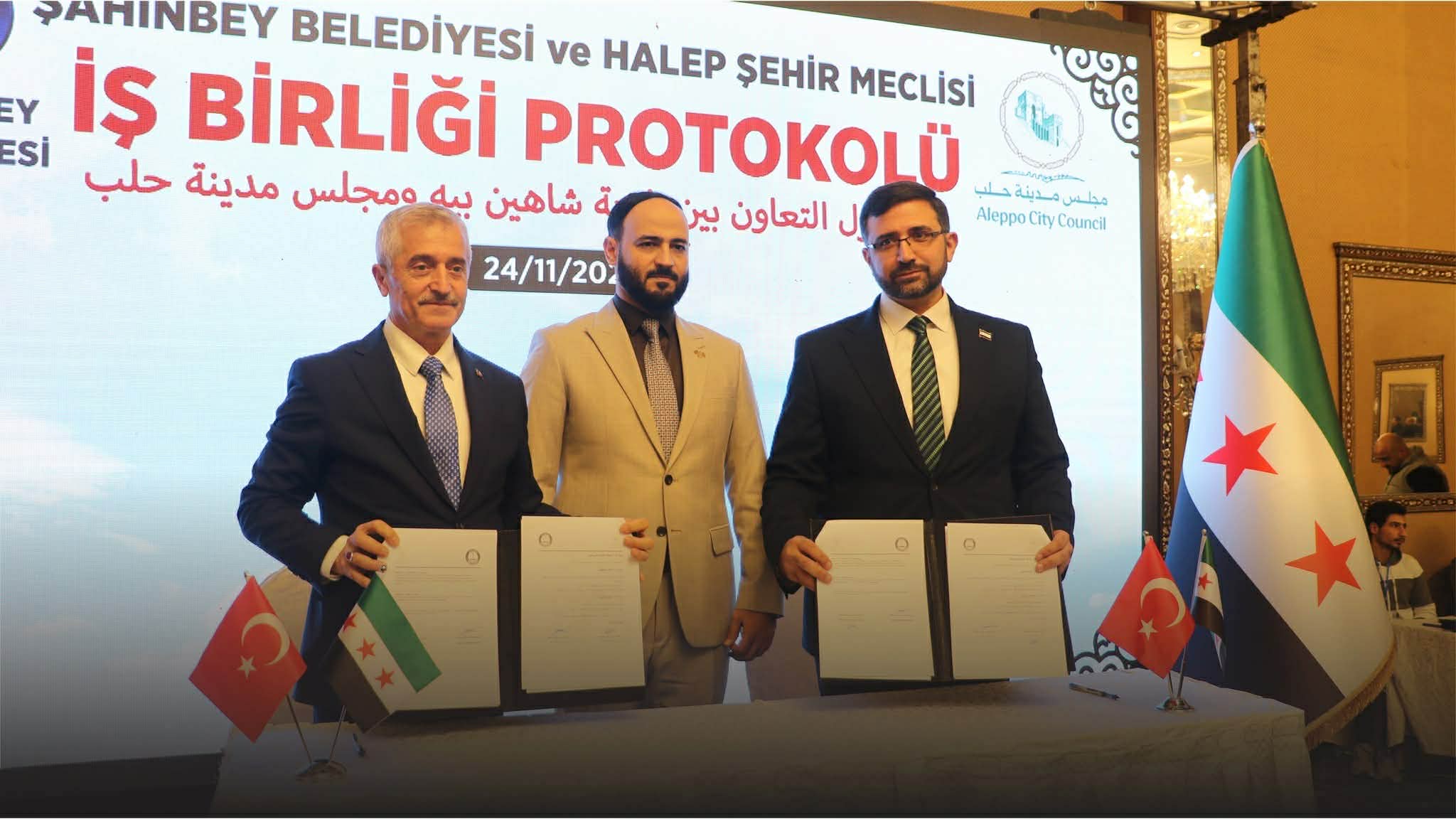 ووقّع الاتفاقية عن الجانب السوري المهندس طلال الجابري ، رئيس مجلس مدينة حلب ، فيما وقّعها عن الجانب التركي السيد محمد إحسان تهمز أوغلو ، رئيس بلدية “شاهين بيه”