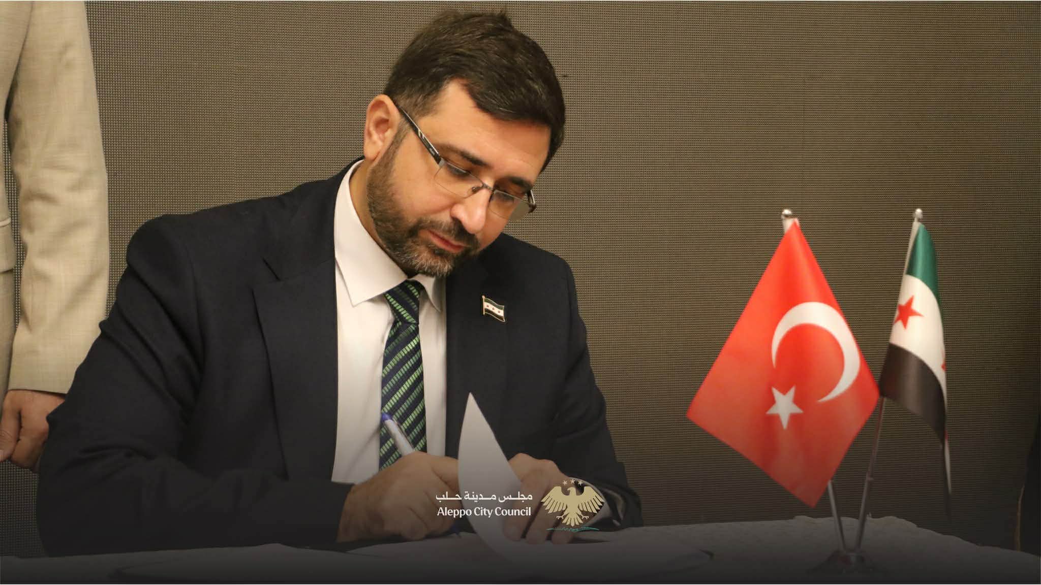 ووقّع الاتفاقية عن الجانب السوري المهندس طلال الجابري ، رئيس مجلس مدينة حلب ، فيما وقّعها عن الجانب التركي السيد محمد إحسان تهمز أوغلو ، رئيس بلدية “شاهين بيه”