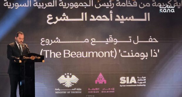 وتم توقيع اتفاقية تأسيس مشروع “ذا بومنت دمشق” بين وزارة السياحة وشركة “ازدهار القابضة”.