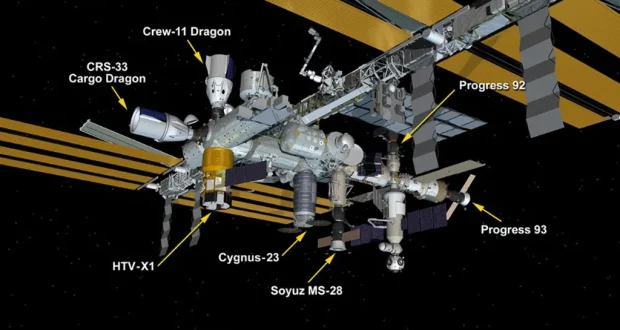 ويضم طاقم كرو- 11 أربعة من رواد الفضاء هم أميركيان وياباني وروسي وكانوا قد وصلوا إلى المحطة في آب/ أغسطس الماضي وموعد عودتهم الأصلي في أيار/ مايو المقبل.