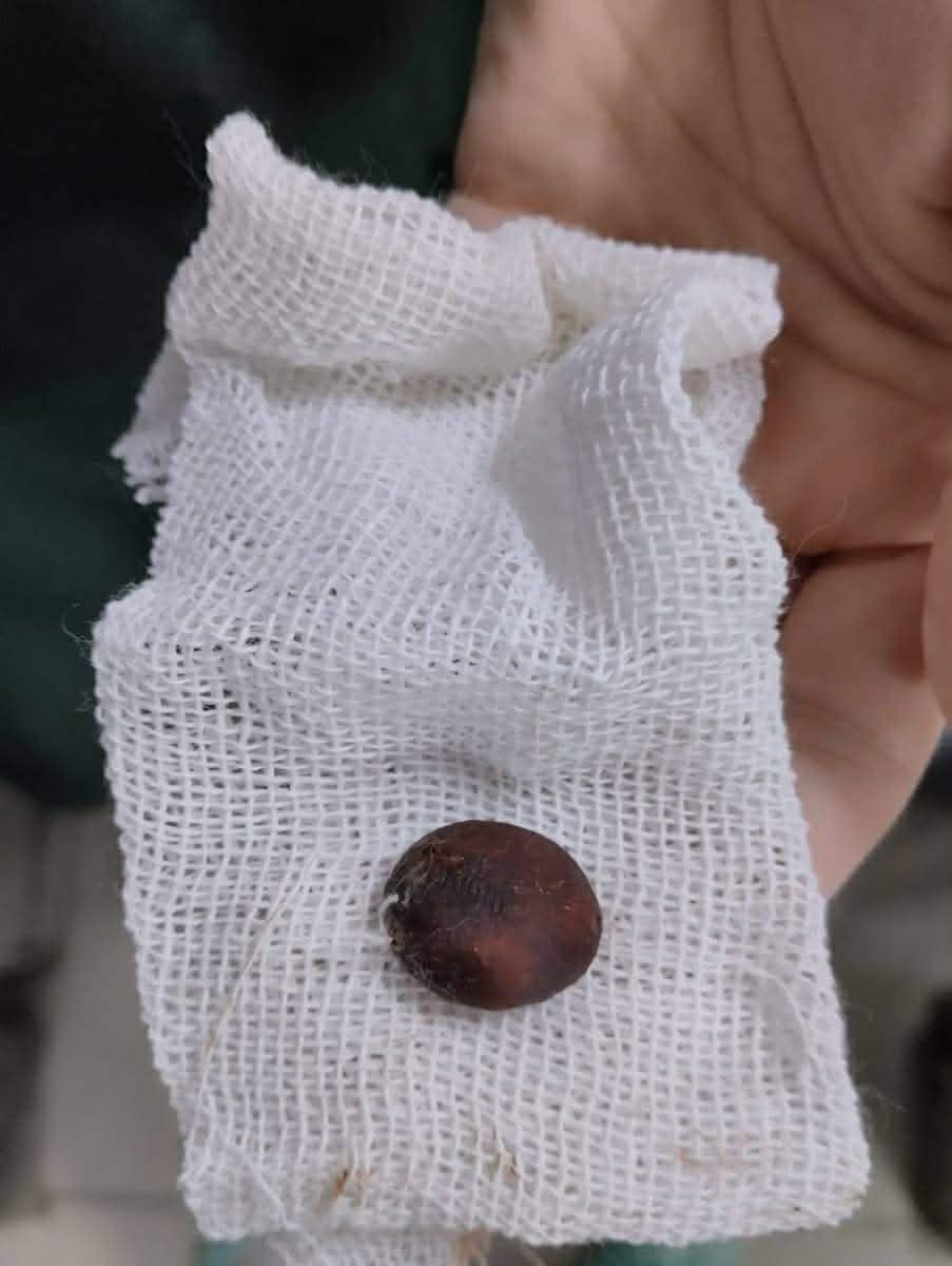 وبالعودة إلى القصة المرضية، أفاد المريض بتعرضه لحادثة استنشاق (بذرة أكدنيا) منذ أكثر من عام، مما سهل عملية التشخيص.