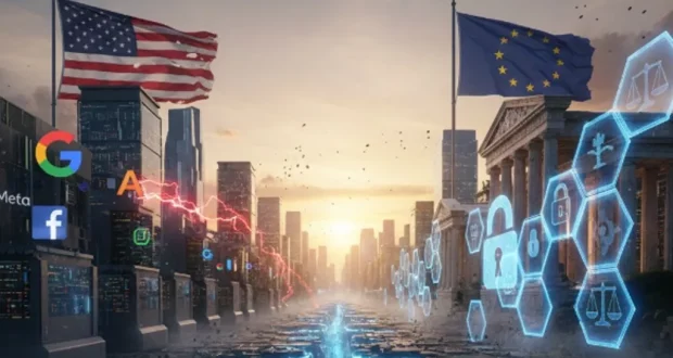 لم تعد ساحة الصراع بين ضفتي الأطلسي تقتصر على الحدود الجغرافية أو الرسوم الجمركية التقليدية، بل انتقلت إلى عمق “السيادة الرقمية”. ففي عام 2026، يشهد العالم ذروة نزاع تقني غير مسبوق بين الولايات المتحدة والاتحاد الأوروبي، حيث تتصادم رغبة واشنطن في حماية عمالقة التكنولوجيا مع إصرار بروكسل على فرض القبضة التنظيمية.