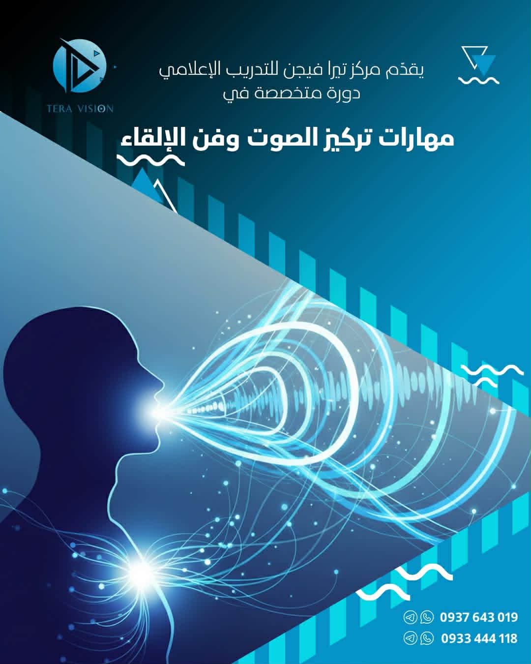 يقيم مركز “تيرا فيجن للتدريب الإعلامي” دورة متخصصة في مهارات تركيز الصوت وفن الإلقاء اعتباراً من يوم السبت الرابع عشر من الجاري وحتى السابع عشر منه في مقر المركز على كورنيش طرطوس البحري