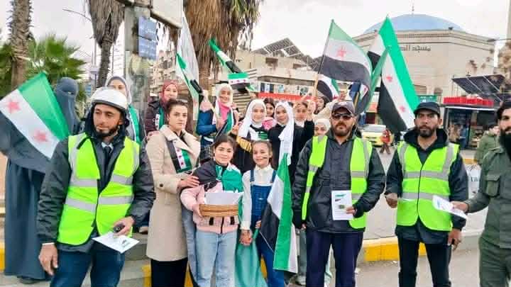 •كما انطلقت بالمدرسة الخيرية النموذجية الإعدادية مسيرة باصات بأجواء مليئة بالفخر والانتماء ،ورفرفت فيها الأعلام السورية ،مؤكدين أن روح الوطن مازالت تنبض في قلوبهم