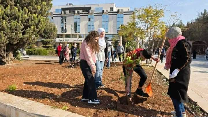 : أطلقت في جامعة حمص في مديرية الشؤون الهندسية ومعهد شؤون البادية والتصحر حملة تشجير في الحرم الجامعي احتفاء” بالتحرير ،وأكد رئيس جامعة حمص الدكتور ” طارق حسام الدين” أن حملة التشجير ليست مجرد نشاط بيئي ،بل رسالة علمية وأكاديمية تعبر عن قيم الحرية والبناء التي حملتها الثورة ،مبينا” أن الجامعة تحتفي بالتحرير عبر تحويله إلى إنجازات عملية تخدم الطلبة والمجتمع،وتسهم في تعزيز الهوية البيئية للجامعة.