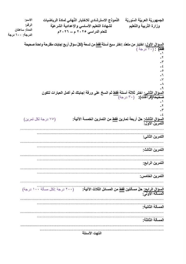 تعدّد الأسئلة الاختيارية في امتحان الرياضيات لشهادة التعليم الأساسي ..سلبياتها أكثر من إيجابياتها !!