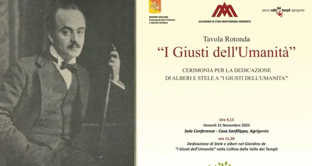 الحدَث: احتفالٌ بــ”أَبرار الإِنسانية”، نظَّمَتْهُ “أَكاديميا الدراسات المتوسطية” داخل “حديقة الأَبرار” في مدينة أَغْريجِنْتو، برعاية “الدائرة الإِقليمية للتراث الثقافي والهوية الصقليَّة”، تعاوُنًا مع بلدية أَغْريجِنْتُو.
