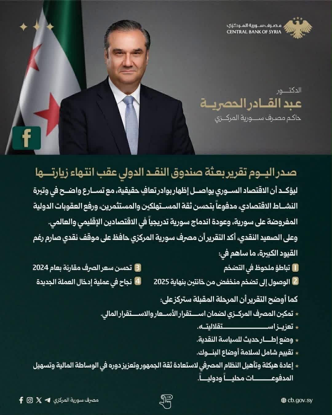 اعتقد انه من ركائز الشرعية القوة الاقتصادية ..وان القوة الاقتصادية هي الورقة الرابحه على طاولة السياسة .وان استثمار التحرك الخارجي النقدي والمالي تجاه سورية بنهج مسيس يعتبر خطأً فادحاً . فطروحات صندوق النقد الدولي . باتت واضحة جدا . وتختصر بجمله بسيطه هي “اذا امتلكت سورية الارادة للاندماج المالي العالمي عليها البدء من الداخل قبل ولوجها للخارج “.