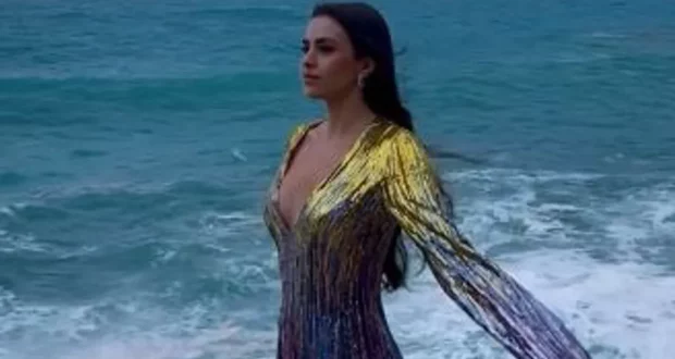 زين قطامي بفستان ترتر لافت من إيلي صعب زيّن إطلالتها عند غروب الشمس