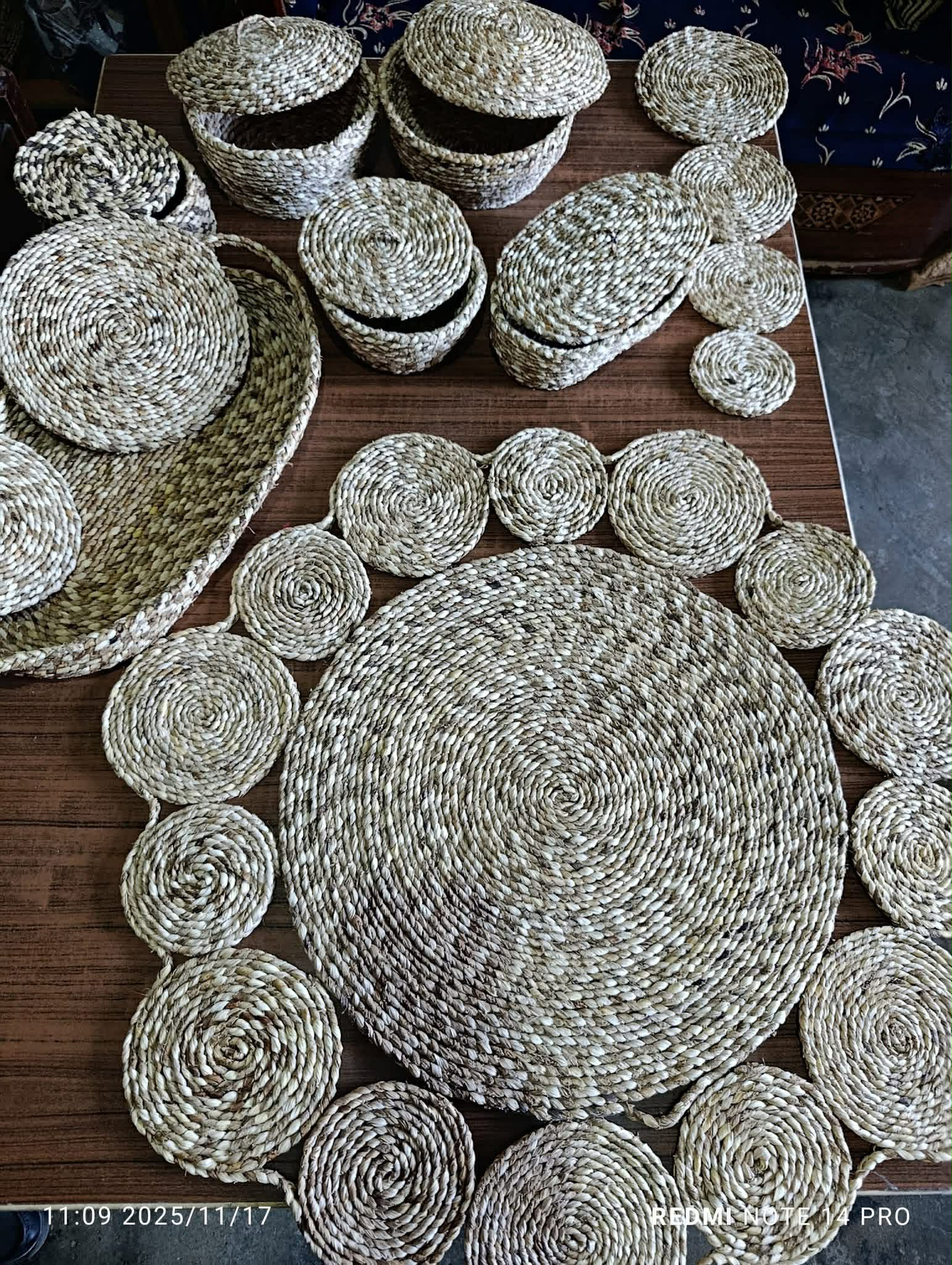 وعن طريقة عملها أفادت حبيب: عملي ليس سهلاً، بل يتطلب جهداً ووقتاً، حيث أبدأ بنزع اللحاء عن جذع شجرة الموز، ثم أقطّعه إلى شرائط متساوية، وأتركها لتجف تحت الشمس، بعدها أجدلها لتصبح حبالاً طويلة، ثم أخيطها بالشكل الذي أريده باستخدام الإبرة والخيط والمقص، كل قطعة أصنعها تحمل بصمتي، فهي من تصميمي الخاص، وأحياناً أنفذ طلبات خاصة حسب رغبة الزبائن.
