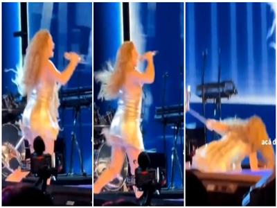 شاكيرا تتخطى سقوطاً مؤلماً على المسرح