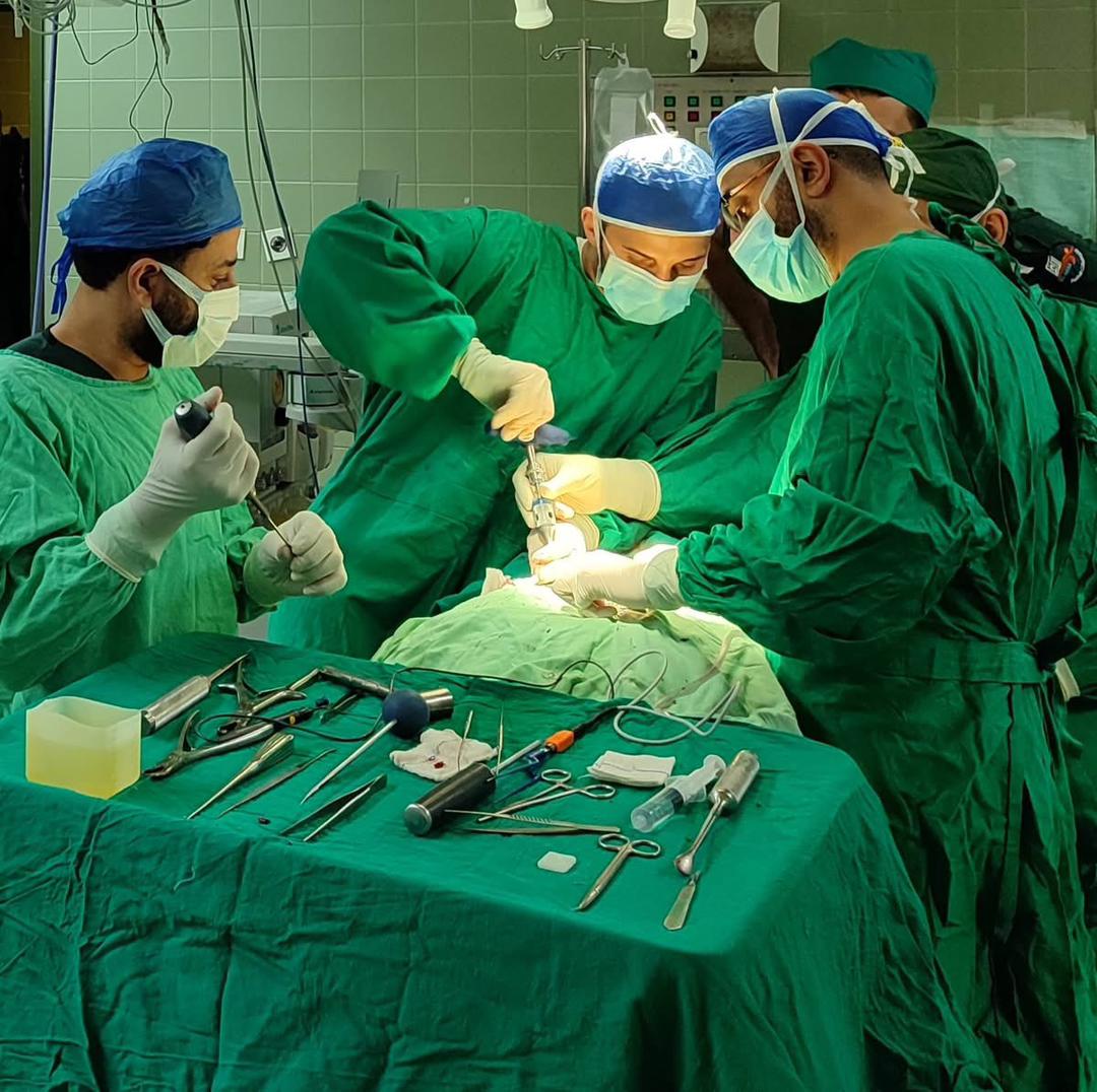 هنا داخل المستشفى الوطني الجامعي بدمشق يواظب فريق طبي متخصص من مركز الملك سلمان للإغاثة والأعمال الإنسانية وبالمشاركة مع الجمعية الدولية لرعاية ضحايا الحروب والكوارث اقامة عدد من العمليات النوعية الجراحية في رؤية إنسانية تهدف إلى دعم القطاع الصحي السوري وتقديم الرعاية للمرضى الأكثر حاجة وذلك تحت مظلة حملة « أمل السعودية الطبية » .