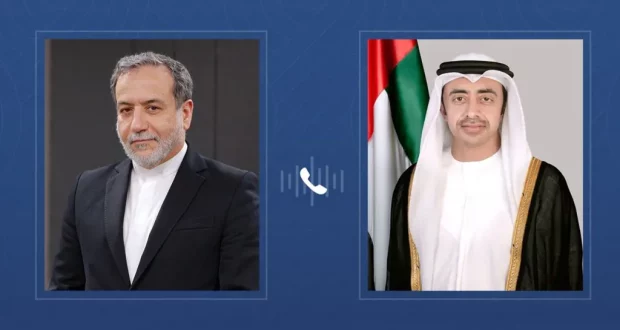 أجرى نائب رئيس مجلس الوزراء وزير الخارجية الإماراتي الشيخ عبدالله بن زايد آل نهيان الثلاثاء اتّصالاً هاتفياً مع نظيره الإيراني عباس عراقجي.